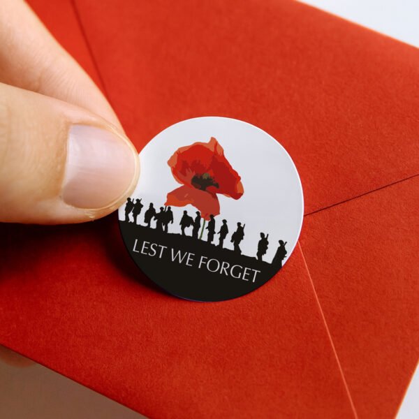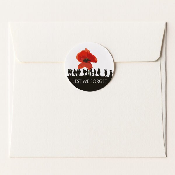 Commemorate the service and sacrifice of our fallen heroes with our Lest We Forget Red Poppy Stickers. These beautifully crafted circular labels are a meaningful way to mark Remembrance Day, school projects, community events, or heartfelt correspondence.