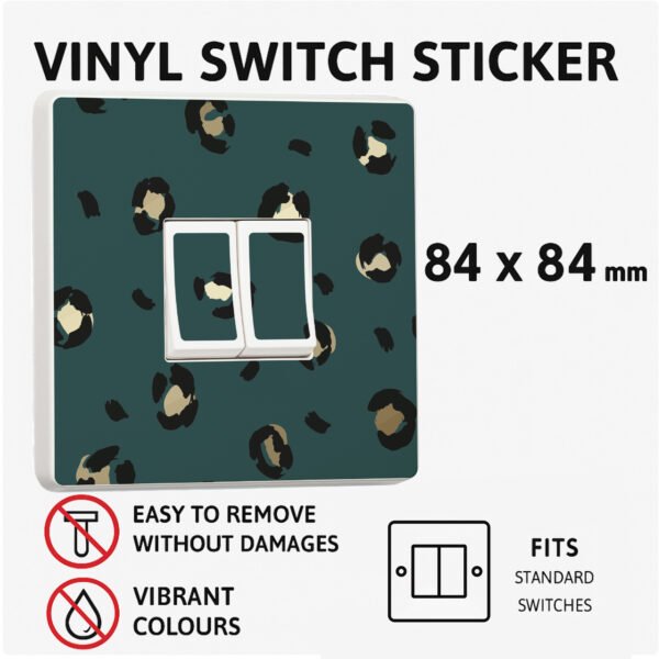 Pack of 2 Green Leopard Animal Print Vinyl Light Switch Stickers – Easy Peel & Stick