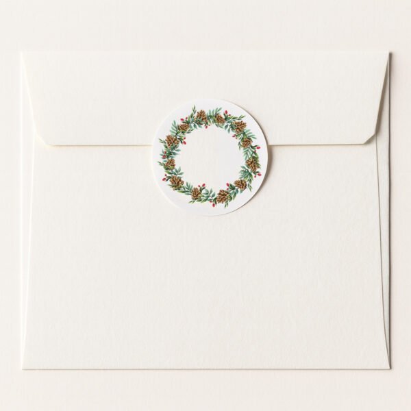 Pine Wreath Merry Christmas Stickers – Premium Self-Adhesive Labels for Cards, Gifts & Holiday Crafts