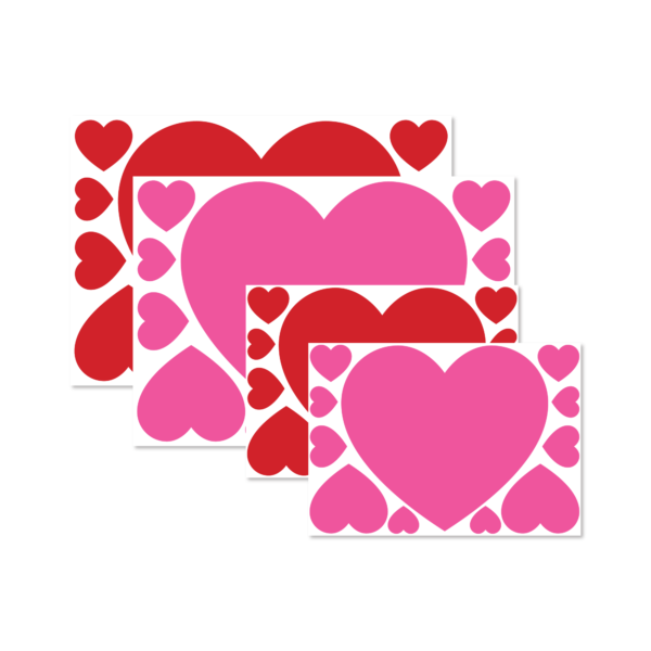 Red & Pink Self-adhesive Vinyl Heart Stickers – A4 & A3 Craft Stickers for Valentine’s Day