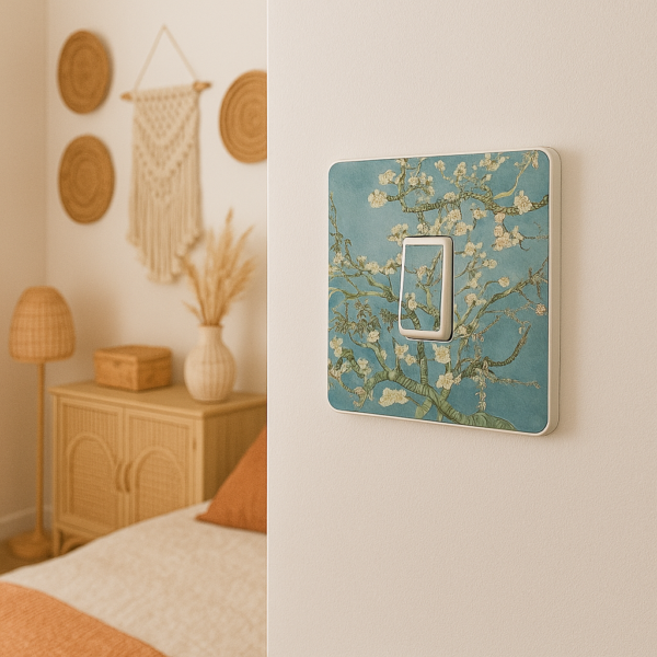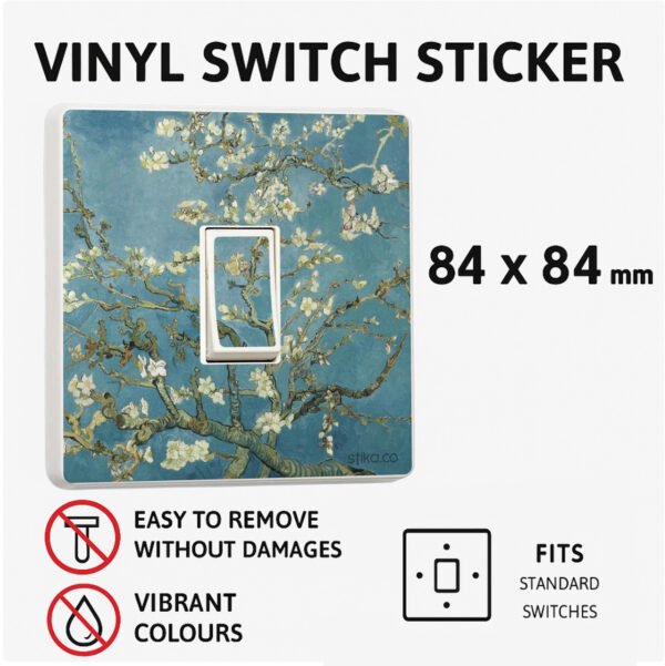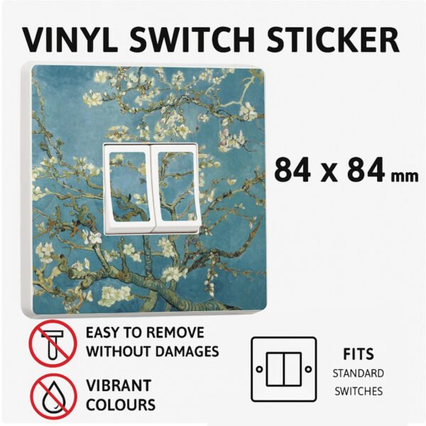 Enhance your home decor with our stunning Van Gogh Blossom light switch stickers, available for single, double. Each sticker is printed with high-quality, solvent-free inks on branded self-adhesive vinyl, ensuring long-lasting durability and vibrant colors.